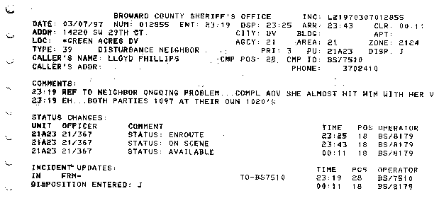 Because there were so many CONTRADICTIONS in their Depositions, plus the 3 hour DISCREPANCY in time of the printouts, the evidence had to "disappear." BSO Detective John Berrena removed all evidence for 2 years, yet finally returned my call using a "phone patch." Since I had also performed communications work for BSO years earlier, I noted the phone number he was calling from that came through my Caller-ID. (Please note the lack of Chain of Custody dates and signatures on the custody sheets, but TRIAL TRANSCRIPTS STATE THE EVIDENCE WAS MISSING).